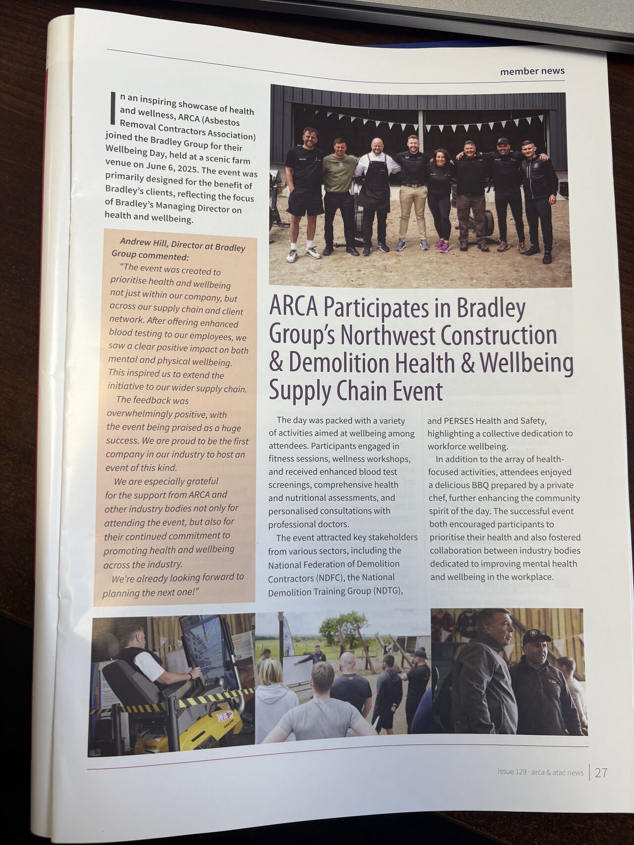 The success of the event didn’t go unnoticed. The initiative was featured in ARCA News, where Bradley Group was commended for leading the way in championing workplace wellbeing and mental health across the demolition and asbestos removal sectors.