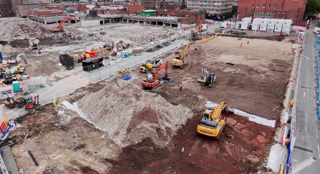 As part of St Helens Council’s ‘once-in-a-generation’ transformation programme, Bradley were proud to be appointed to deliver the asbestos removal and demolition of the former town centre bus terminal roughly 7000m2, working in partnership with Vinci. This was the first stage in the demolition works contracted to Bradley, who later started works to the Hardshaw Shopping Centre, adjacent to the bus terminal.